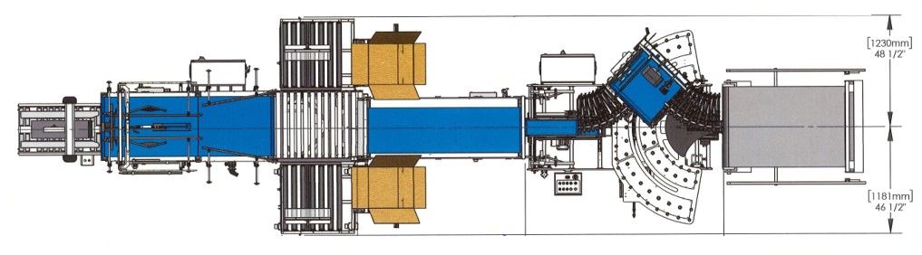 A similar cell can be combined with a VEGA machine output instead of BOBST,shown below with an 'idea of forming +filling +palletizing